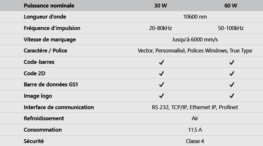 - Conception optique avancée, qui minimise la perte de lumière, assurant une grande précision et une grande vitesse de marquage.