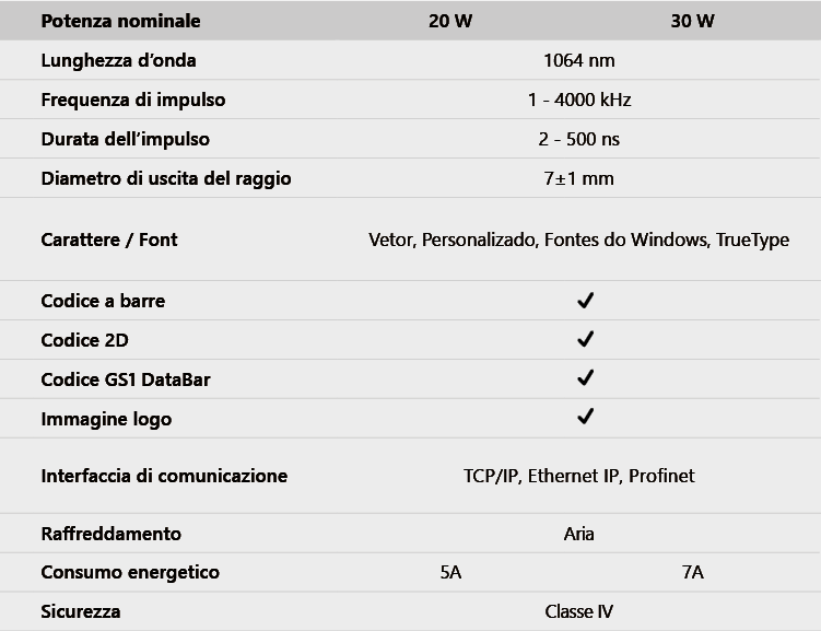 - Sistema di marcatura con regolazione della durata dell’impulso.