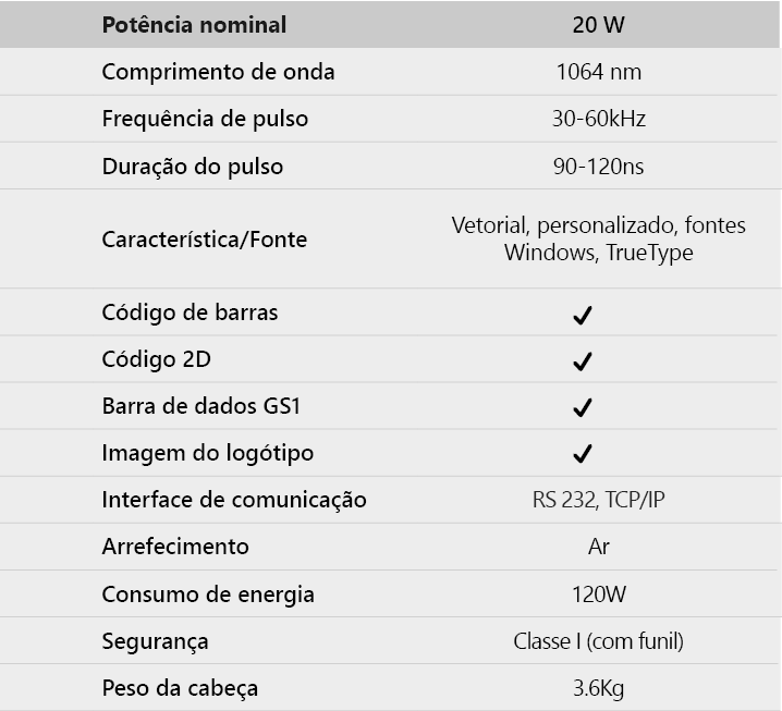 - Laser de fibra portátil, fácil de transportar e manusear, com nível de segurança classe I.